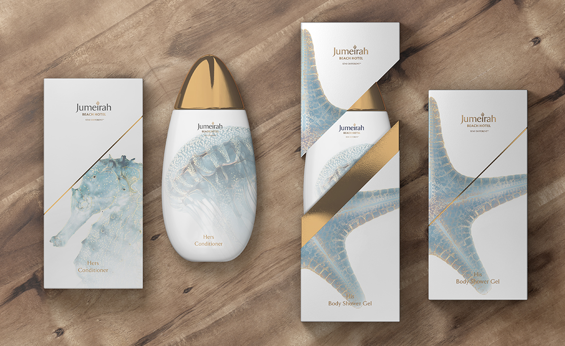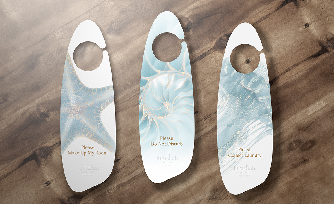 Trivium partnered with Jumeirah Beach Hotel following its 2018 refurbishment to craft a vibrant new graphic theme reflecting its oceanic surroundings. The creative team designed visuals inspired by the resort’s aqua-atmosphere, blending aquatic hues with subtle golden accents that captured the essence of luxury and relaxation.
