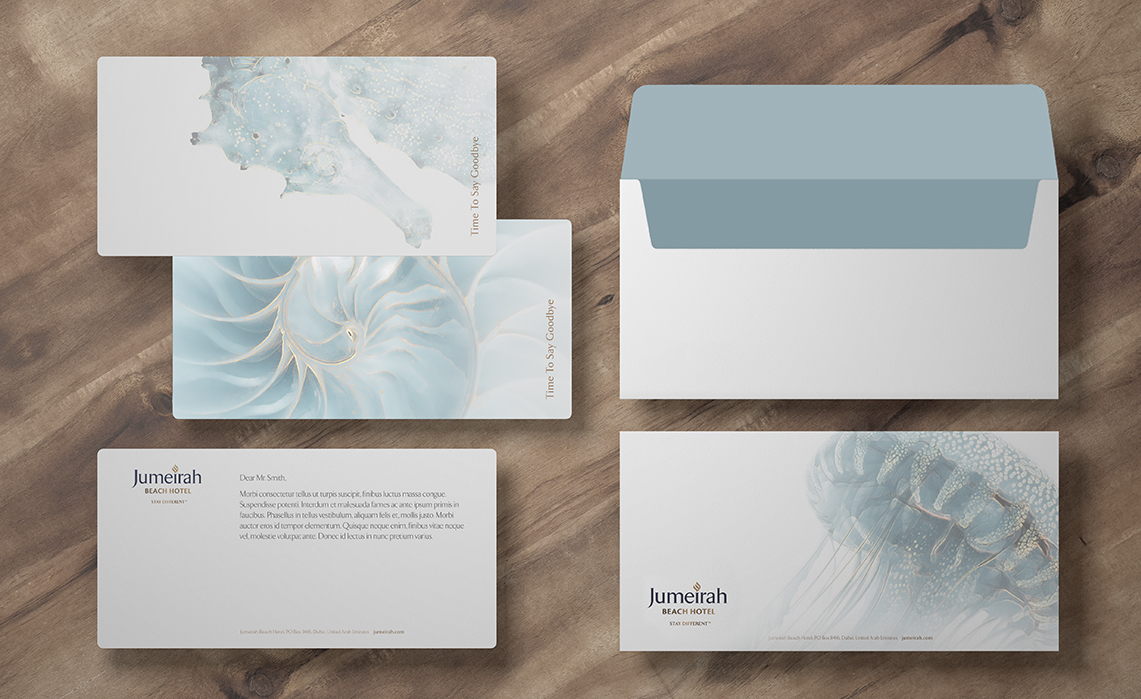 Our design strategy centered on capturing the essence of Jumeirah Beach Hotel’s oceanic setting. By blending aquatic tones with subtle golden accents, we ensured a harmonious balance of elegance and relaxation. The visuals were designed to resonate across guest and corporate communications, with adaptations for Kids Club elements to align with the family-friendly theme. Every detail was crafted to reinforce the hotel’s refreshed identity while enhancing its visual appeal.