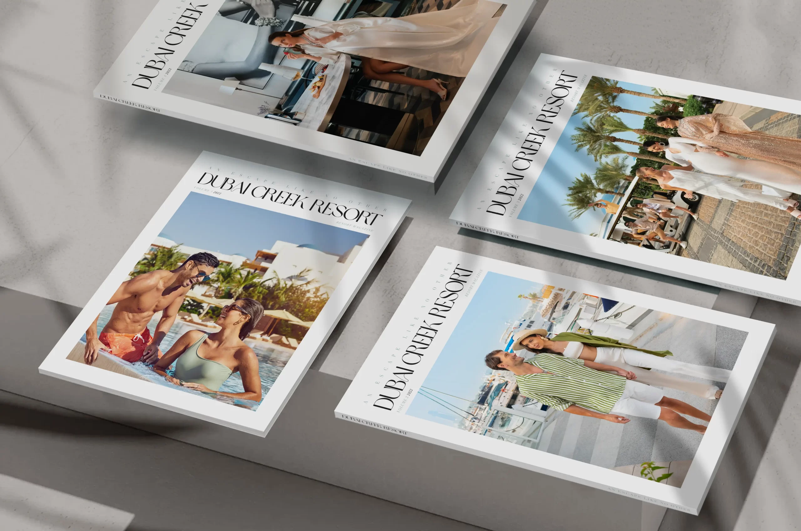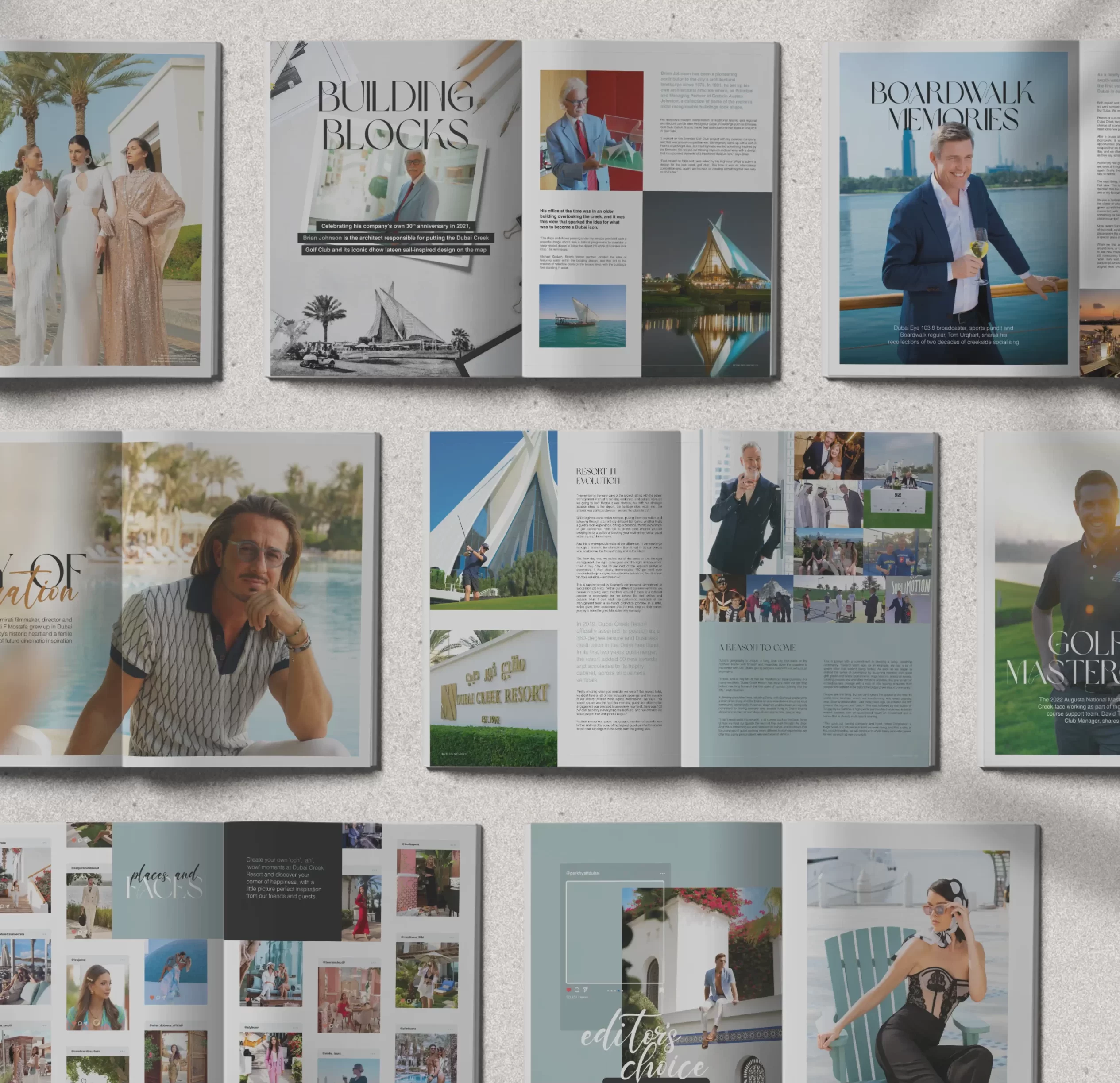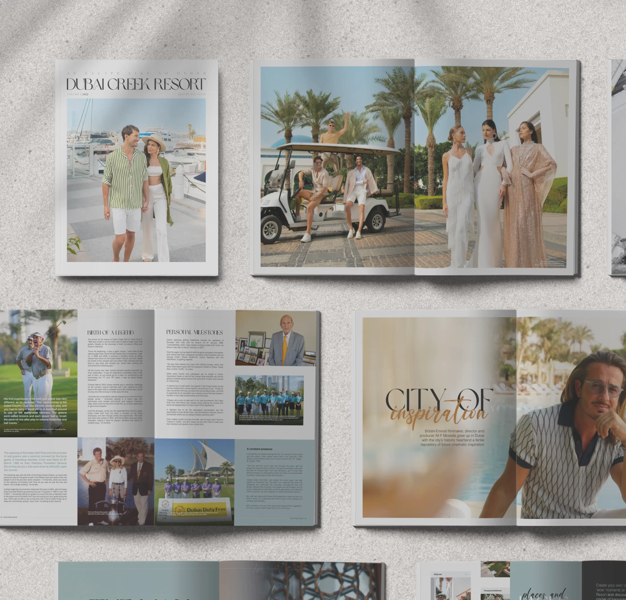 Trivium collaborated closely with Magazine Editor Rosemarie Tacorda, Director of Marketing at Dubai Creek Resort, and writer Claire Malcolm to conceptualize and produce three annual volumes of the magazine. From editorial planning and layout design to print production, Trivium ensured every detail aligned with the resort’s sophisticated aesthetic. By delivering a visually stunning and editorially engaging publication, available across the resort, Trivium successfully captured the spirit of Dubai Creek Resort, creating a memorable experience for its discerning guests.