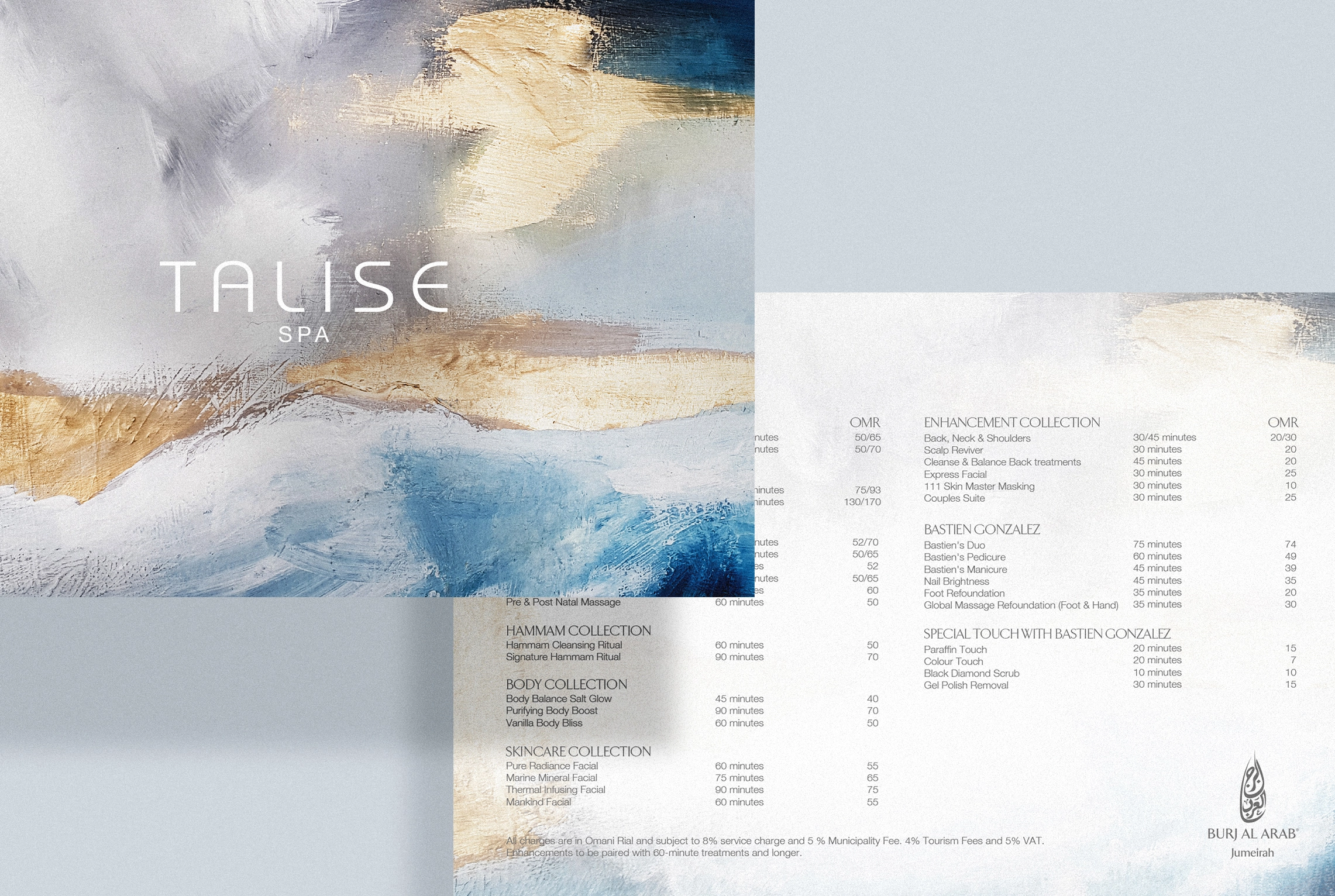 Our work included creating bespoke visual elements for Talise Spa at Jumeirah Muscat, Jumeirah Al Qasr, and Burj Al Arab, ensuring the designs resonated with the territorial essence of each venue. From sound meditation to private yoga sessions, the visuals reflected the spa’s transformative offerings while enhancing the guest journey.